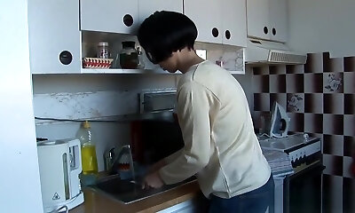 Unshaved italian anal in the kitchen