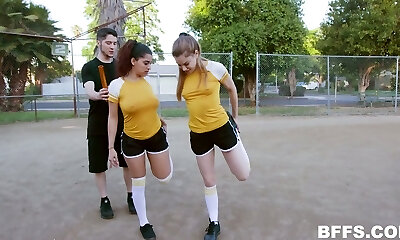 Sexy football girls are fucked and cummed by wild coach with big cock
