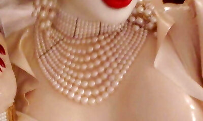 Spandex rubber doll in fuck-rubber dress.