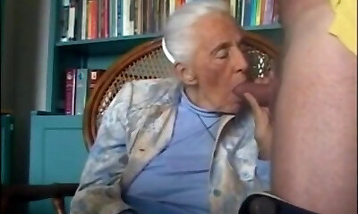Gross GRANNY POSES FOR CAM AND POKES ASS